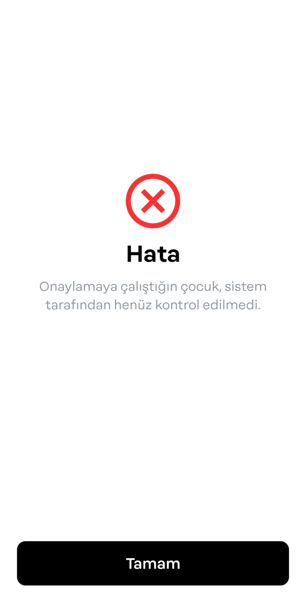 18 yaşından küçüğüm ve bundan dolayı velimin onaylaması gerekiyor.Ben de istenilenleri yaptım ve bir tek velimden onay alma kısmı kaldı.Velimin telefonundan onay vermeye çalıştığımda ise bu çocuk daha sistem tarafından onaylanmadı diye bir uyarı çıkıyor.Son 4 gündür deniyorum ama her seferinde aynı cevabı alıyorum.Sistemden onay yapılacak olsaydı çoktan yapılmış olurdu diye düşünüyorum.Lütfen artık hesabımı onaylı hesap yapmama izin verin.