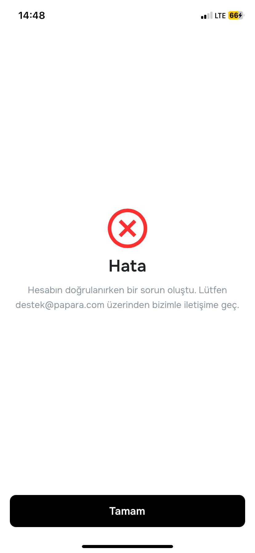 Papara hesabımı doğrulamak istiyorum ama sürekli “Destek ekibiyle iletişime geçiniz” uyarısı alıyorum. Uygulamada ya da web üzerinden denedim ama aynı hatayı veriyor.