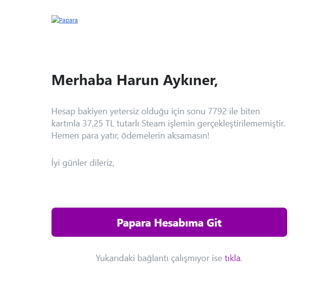 İletmiş olduğun konu ile ilgili talebini oluşturduk. İşlemin ile destek ekiplerimiz en kısa sürede ilgilenecek ve sonuçlandığında Papara hesabına kayıtlı e-posta adresin üzerinden geri dönüş yapacaktır. E-posta adresini ara ara kontrol etmeni rica ederiz.